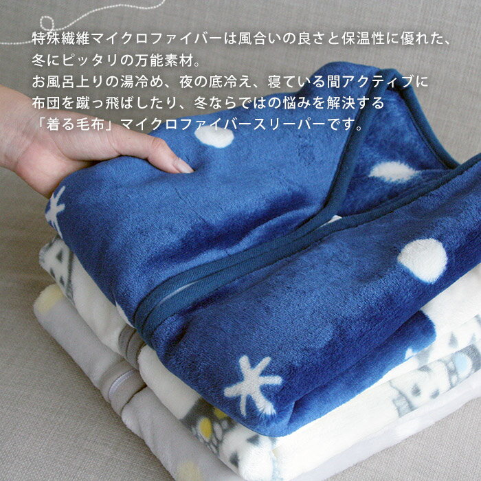 スリーパー マイクロファイバー 着る毛布 両開き ファスナー 赤ちゃん HashkuDe オリジナル 北欧 おしゃれ おすすめ 肌触り おうちで洗える ベビー キッズ 男の子 女の子 あったか ふわふわ 水玉 ドット 幾何学 ほしぞら ミミズク moimoi