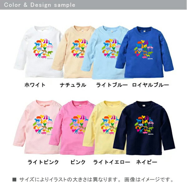 【メール便送料無料】名入れ ベビー服 長袖 Tシャツ [ 動物サークルカラフル ] アニマル 子供 名前入 出産祝い かわいい プレゼント 人気 ランキング 男の子 女の子 動物園 お出掛け 旅行 80 90 100