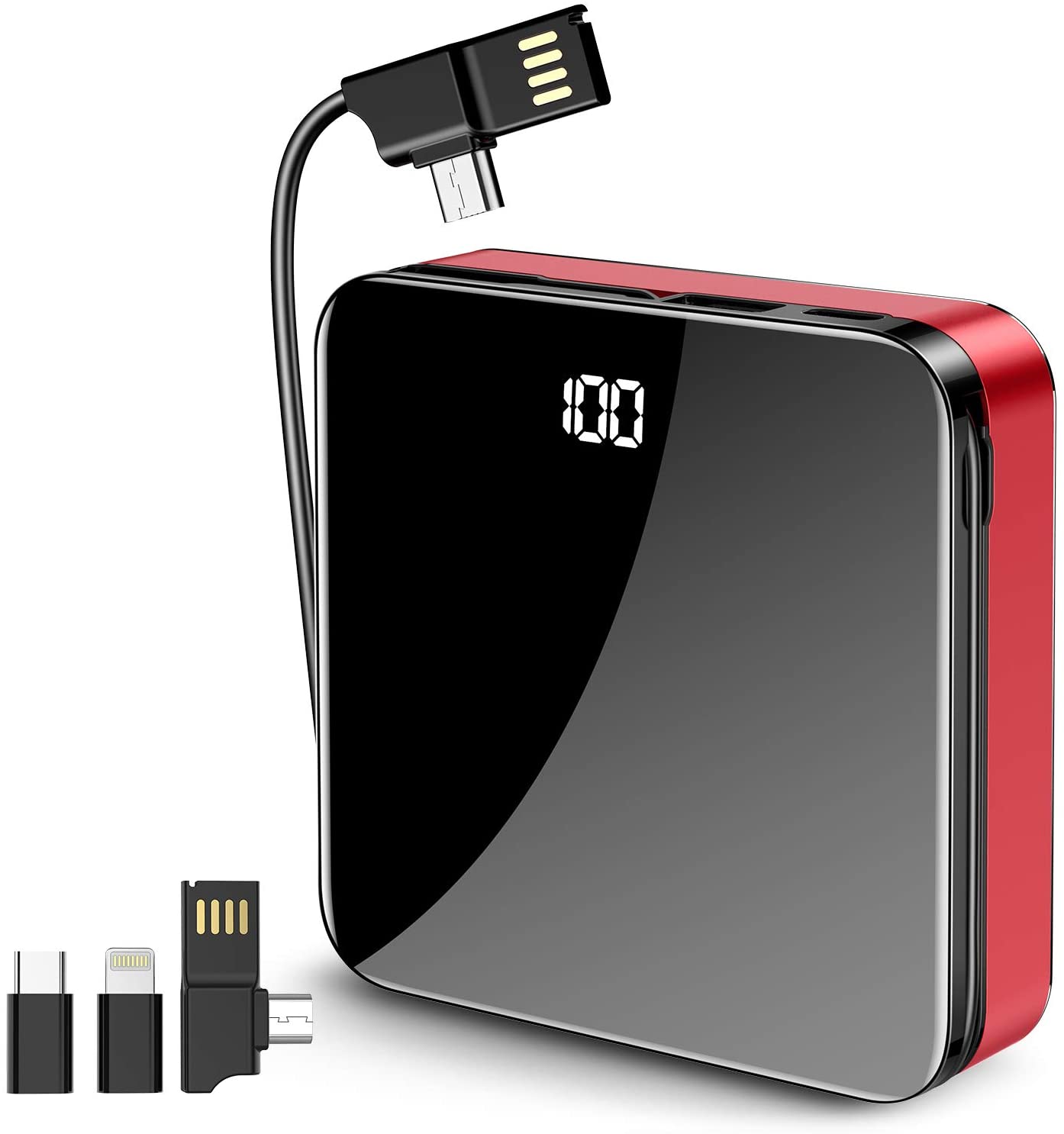 モバイルバッテリー 25000mAh 大容量 ミニ ケーブル内蔵 2A急速充電 USB充電器 二台同時充電でき 携帯充電器 LED残量表示 小型 軽量 コンパク iPhone/iPad/Android&Type-C対応 防災グッズ 旅行 持ち運び PSE認証済み